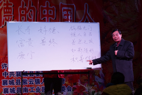 本次講座為期兩天,分別邀請了河南省孝文化促進會副會長馮崇章、韓逸云教授、傳統文化老師張正三位專家學者。他們分別講述了傳統文化中倫理道德、因果輪回及五福人生。