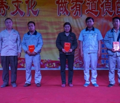 總結大會上,副總經理吳超峰為本次大會致開幕詞,主持人向大家介紹了獲得此次優秀職工的光榮事跡,董事長王曉杰、副總經理吳超峰、生產副總邵艷賓分別對獲得“優秀員工”“優秀班組長”及“優秀團隊”頒發了表彰證書和獎金。