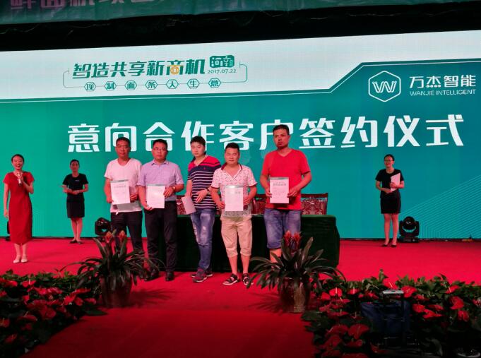 7月22日,智造共享新商機,萬杰智能鮮面機河南大區(qū)定向招商大會在許昌成功落下帷幕。超過70家意向合伙人(170余人)齊聚本次招募大會,當天有30余家意向合伙人簽訂合作意向書。